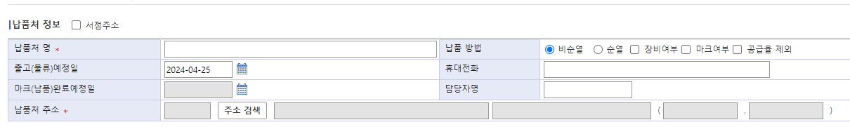 * 납품처 명 : 해당 납품처 명 기입