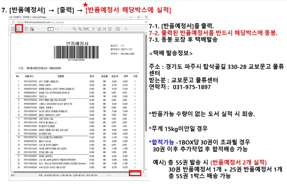 (반품가능 수량이 없는 도서를 반품 할 시, 회송됩니다)